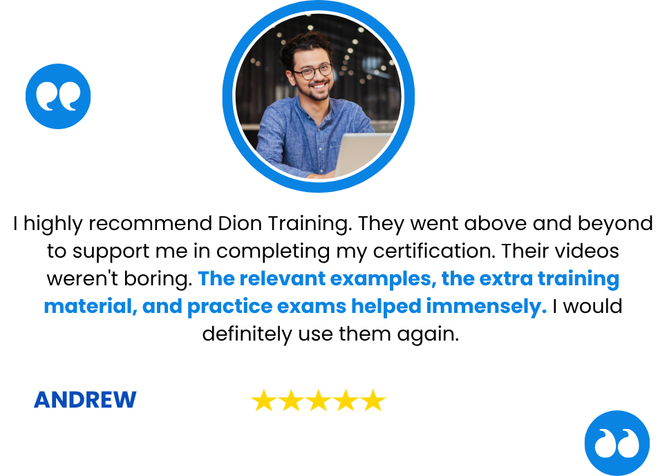 I recently passed my certification exam on the first attempt, thanks to Dion Training. The course was comprehensive, well-structured, and easy to follow.